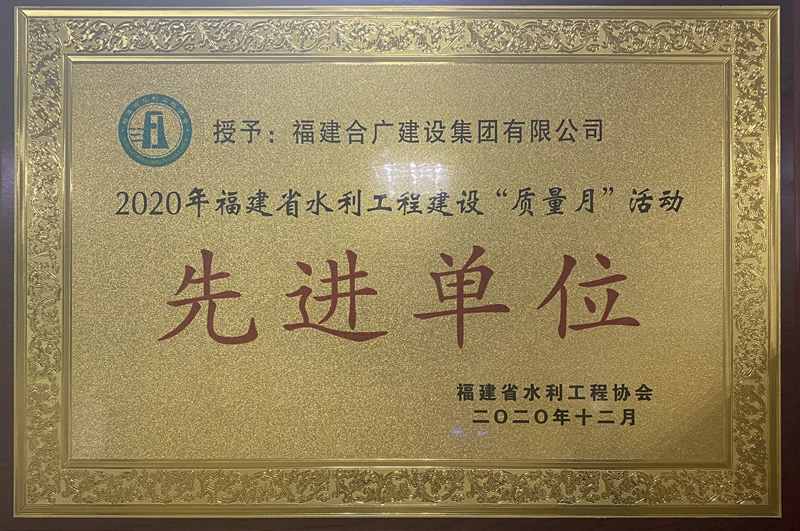 • 福建合廣建設集團有限公司2020年費水利工程質量月榮譽證書